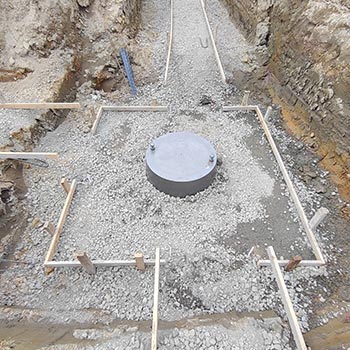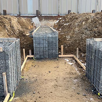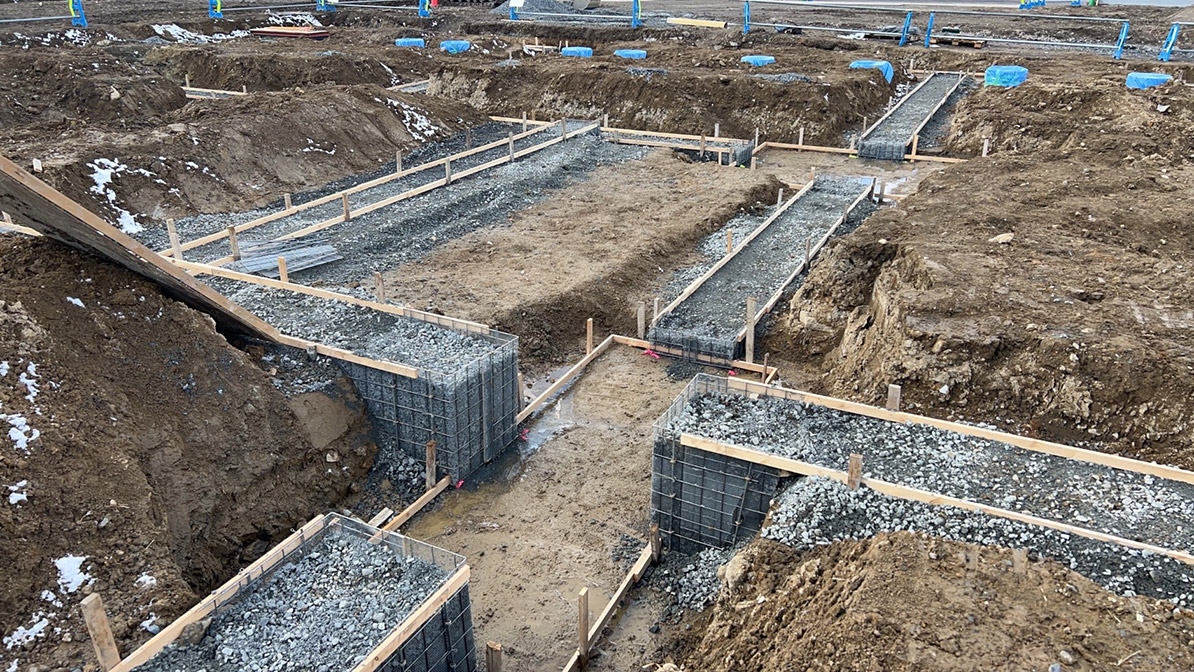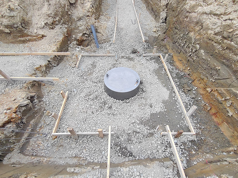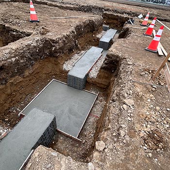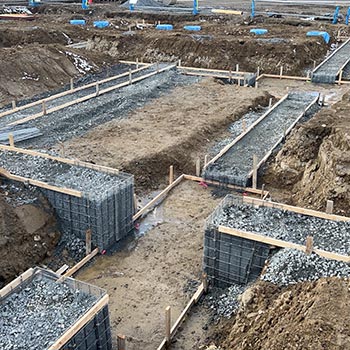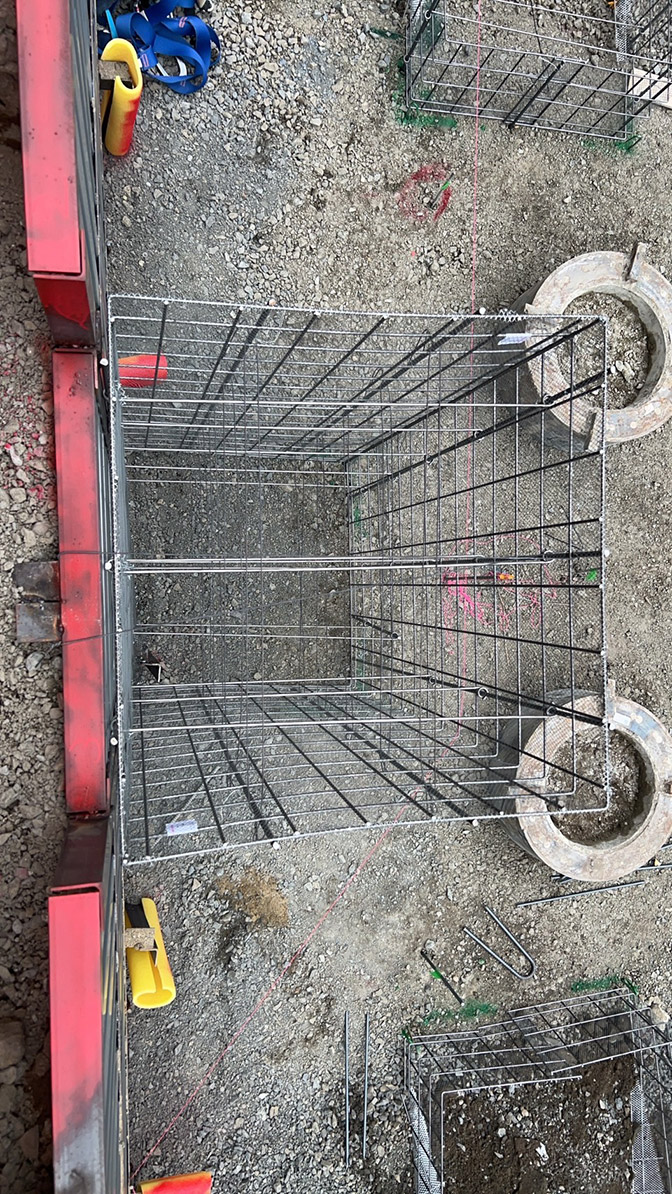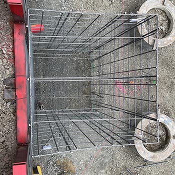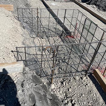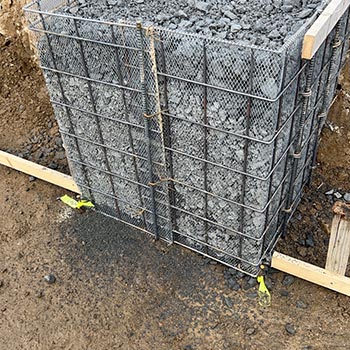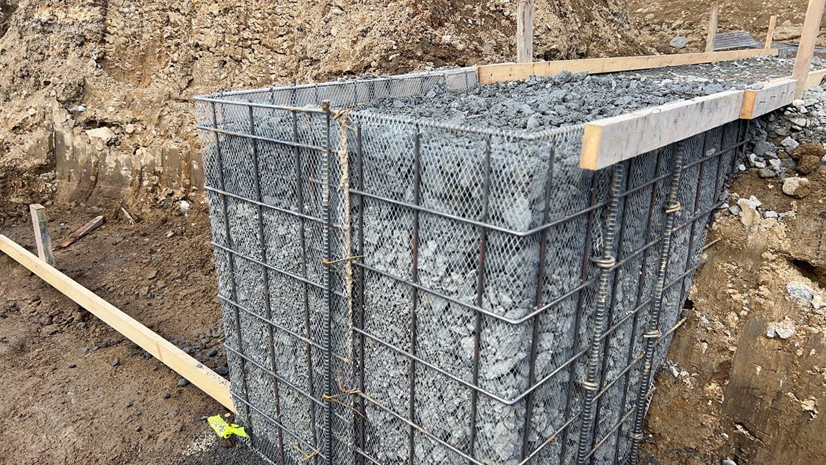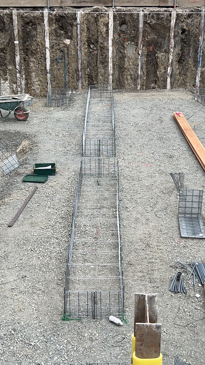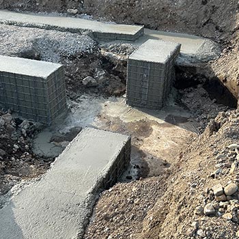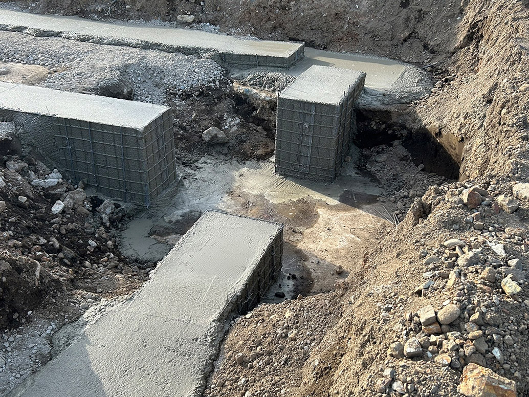 基礎地中梁の梁下を捨てコンクリート前に、アミ枠を設置し基礎基準コンを打設することにより、基礎施工効率化と後の沈下防止にもつながる工法です。