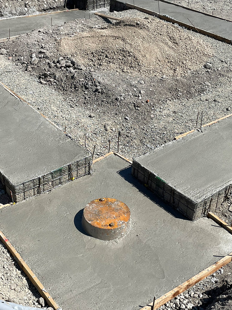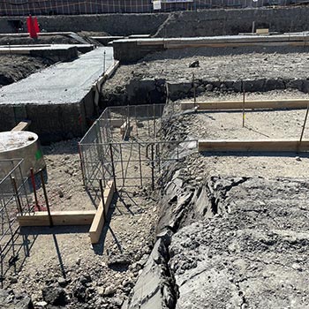 基礎段差部先行打設・施工効率化・沈下防止工法