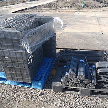 - ※鉄筋工事の基礎エースが端部に建てられ施工しやすく鉄筋がたれない。